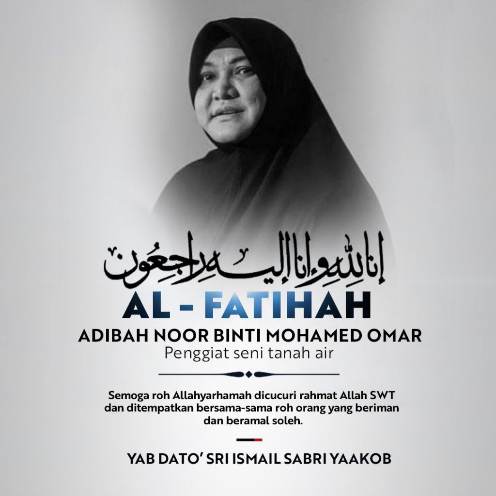 “Sama-sama kita sedekahkan Al-Fatihah buat Allahyarhamah Adibah Noor,” tulis beliau.