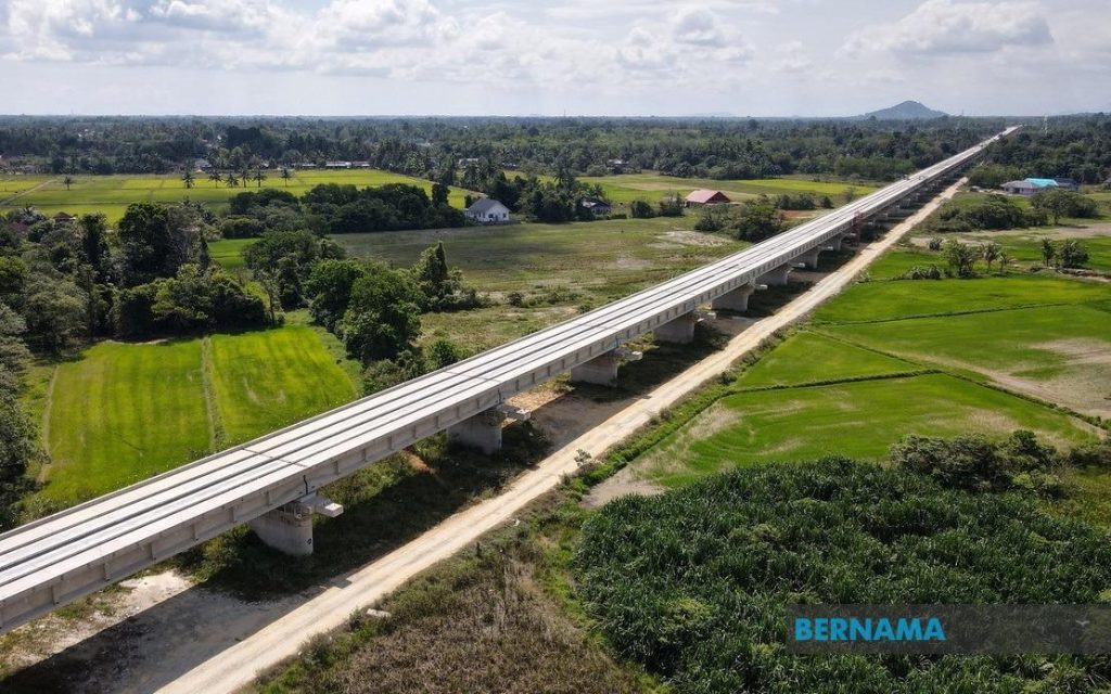“Kerja-kerja pembinaan untuk keseluruhan jajaran ECRL sepanjang 665km dari Kota Bharu, Kelantan ke Pelabuhan Klang, Selangor pula berada pada tahap kemajuan 40.81 peratus.