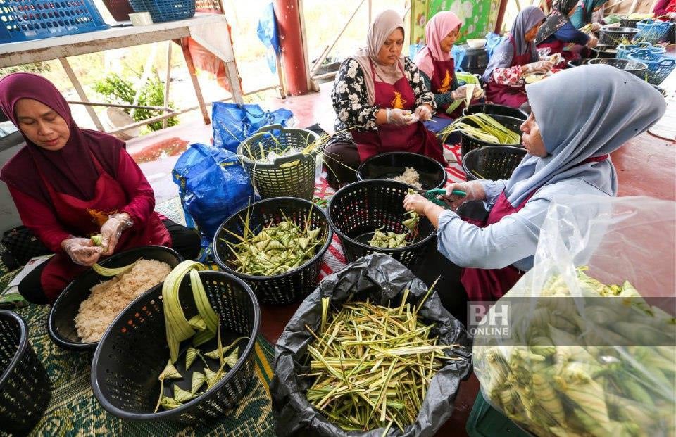 TANAH MERAH – Ramadan memberi rezeki berganda buat 22 wanita dari Kampung Bukit Gading, di sini, yang mengambil upah menghasilkan ketupat palas sejuk beku sebanyak 10,000 biji sehari.