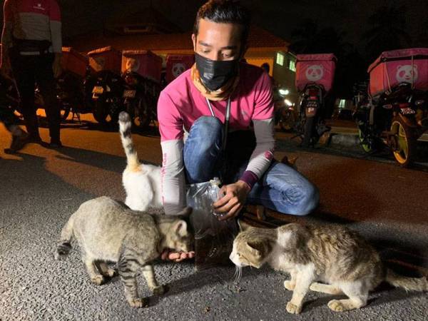 Anak-anak muda tersebut yang bekerja sebagai penghantar makanan akan memastikan mereka mempunyai kesempatan untuk memberi makan kepada haiwan itu setiap hari walaupun dalam tempoh Perintah Kawalan Pergerakan (PKP).