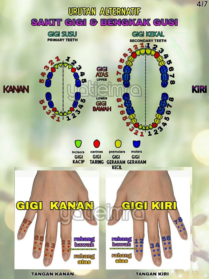 6. Picit refleks point gigi yang sakit pada jari. Boleh rujuk carta gigi–jari dalam post saya sebelum ni.