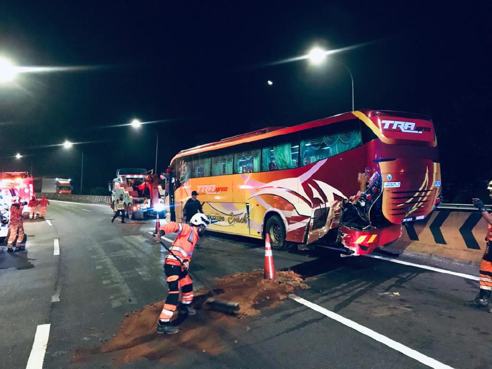 “Bas itu kemudiannya terus hilang kawalan dalam keadaan mengundur sejauh kira-kira 700 meter ke belakang dan melanggar pembahagi jalan lalu terhenti di lorong kanan,” katanya dalam kenyataan.