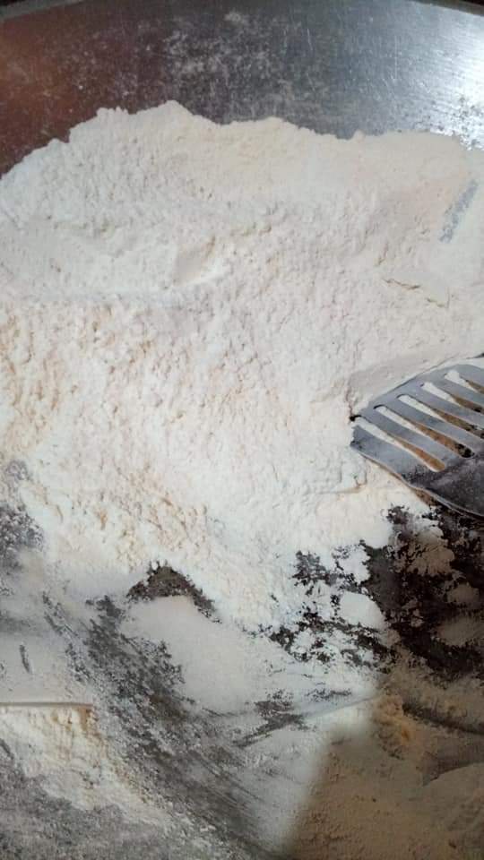 Kemudian, sangai (goreng tanpa minyak) tepung gandum lebih kurang 5 minit macam tu.