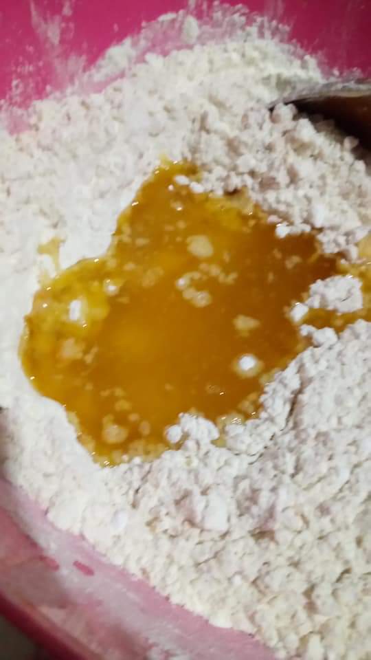 Seterusnya kita masukkan minyak sapi yang dah dicairkan awal-awal tadi.