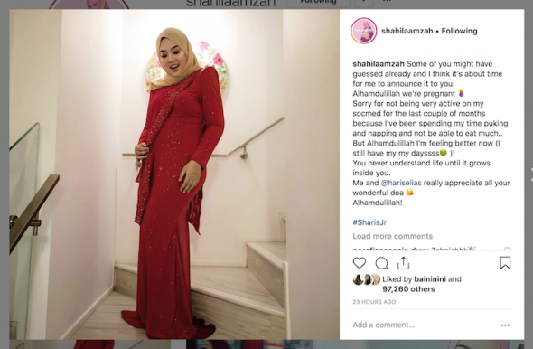 Tahniah diucapkan kepada pasangan ini yang bakal menyambut cahaya mata pertama tidak lama lagi. Semoga proses kehamilan Shila dipermudahkan segala urusan dan gembira menikmati pengalaman ini.