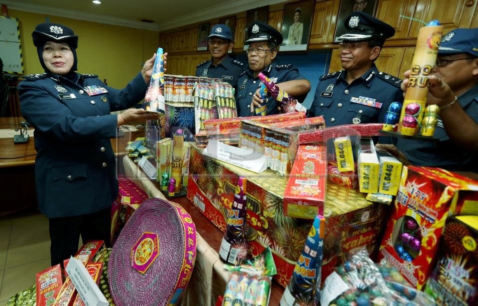KUALA KRAI – Polis menahan tiga lelaki selepas menemukan 97 kotak berisi mercun dan bunga api bernilai RM45,000 dalam lori yang dinaiki mereka dalam perjalanan ke Johor, di Jalan Batu Jong, di sini Ahad lepas.