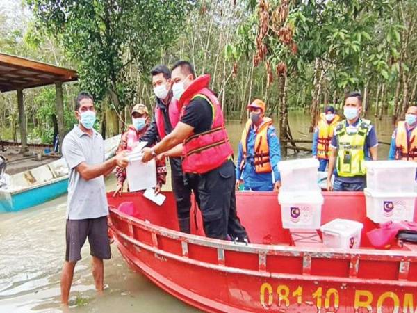 PASIR PUTEH – Anggota pasukan penyelamat terpaksa menyelusuri Sungai Buaya Ikat sejauh satu kilometer untuk mengagihkan bantuan kepada tujuh keluarga yang terperangkap selepas kawasan rumah mereka di Kampung Tasek, Tok Kundur di sini ditenggelami banjir.