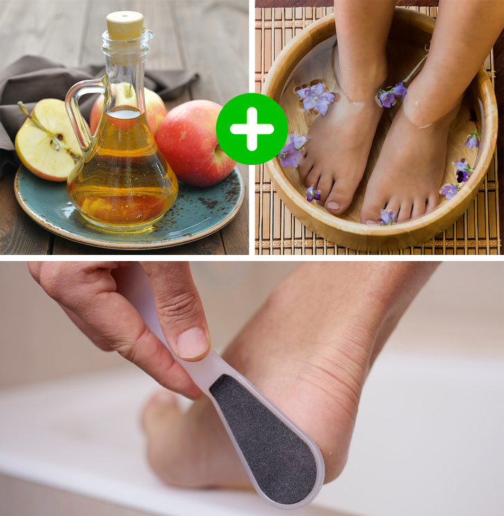 Tanpa kita sedari, kaki kita sentiasa ditutupi dengan stoking dan kasut yang menyebabkan kaki kita tidak dapat oksigen secukupnya sehingga menyebabkan kulit kaki menjadi kering dan berbau. Cuka epal cider boleh membunuh mikroorganisma, melembutkan kulit dan menghapuskan bau kaki yang busuk.