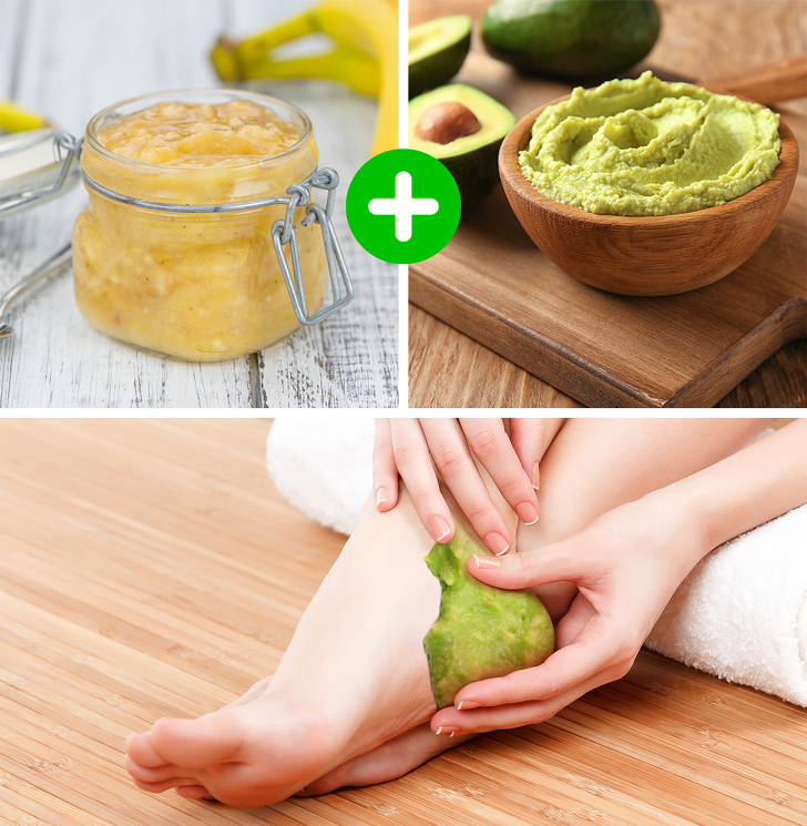 Pisang adalah pelembap yang bagus kerana enzim didalamnya dapat membuang sel-sel kulit mati pada kaki anda. Avocado pula kaya dengan minyak dan lemak semulajadi yang sesuai untuk kulit kering. Gabungan dua bahan ini menghasilkan masker pelembap yang bagus melembutkan kaki anda.