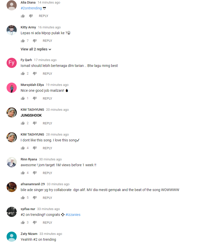 Menurut netizen yang meninggalkan komen, rata-rata komen positif diberikan netizen yang memuji tarian dan genre muzik yang dibawakan Ismail Izzani yang dikatakan lain dari yang lain.